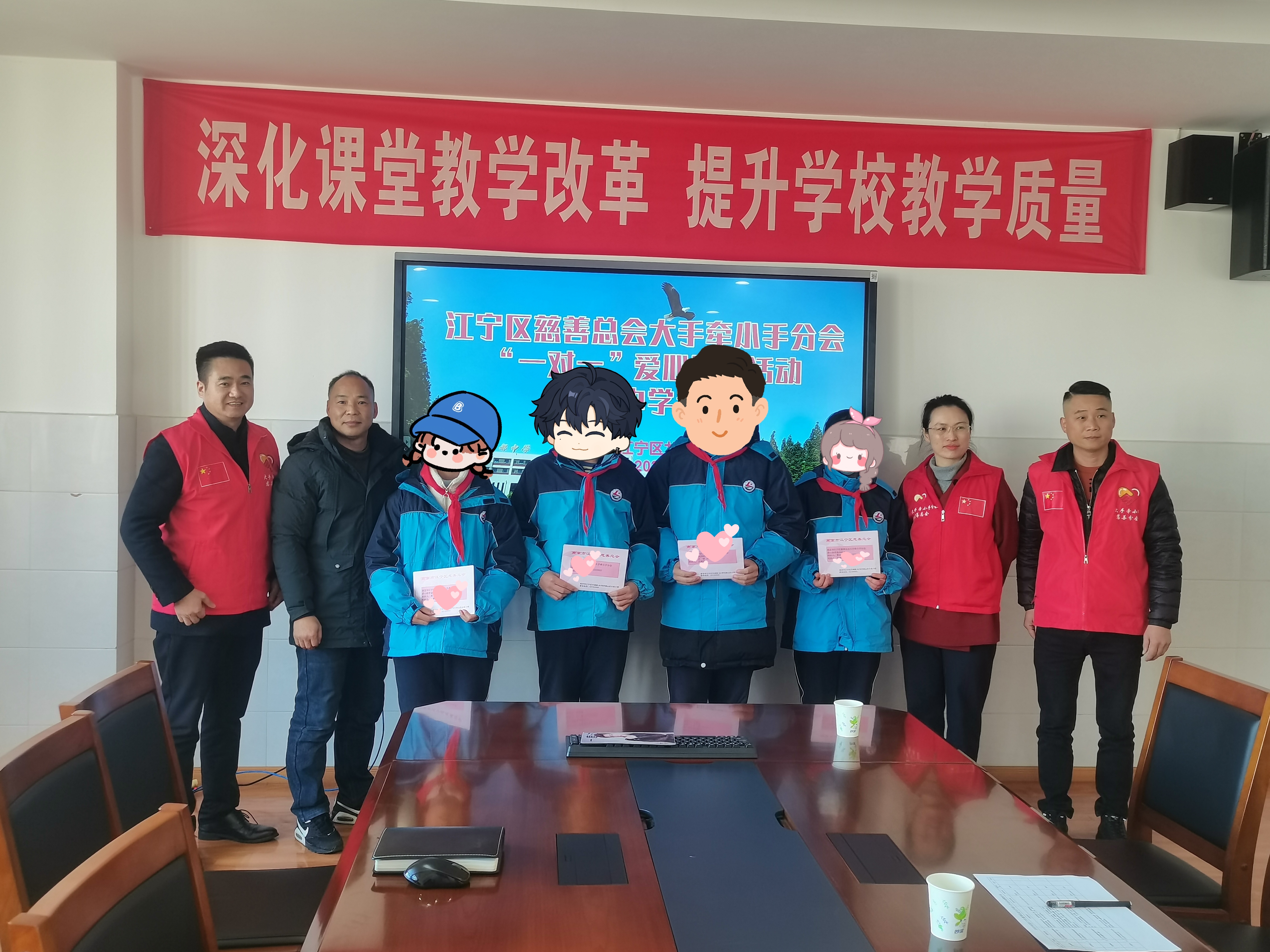 2016年盐城阜宁县遭受特大龙卷风,当时11名江宁志愿者带着筹集的三万余元爱心款和物资冒雨赶到灾区,把江宁人民的关爱直接送到受灾群众手中,至此,大手牵小手分会用“爱...