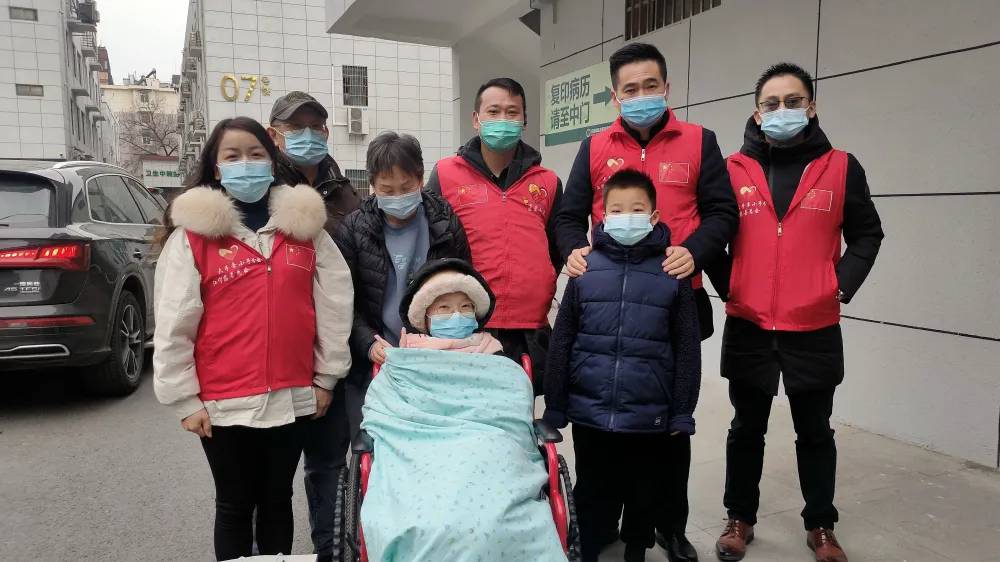 2022年1月14日大手牵小手分会的副会长:张迎雨、张志云、朱少旺、祁金虎,以及志愿者代表:张宸煜、尹金月一行前往南京八一医院看望最后需要一次手术治疗的李添碧,并为她带去了爱心款20000元,诠释“用点滴爱心·助生命前行”。