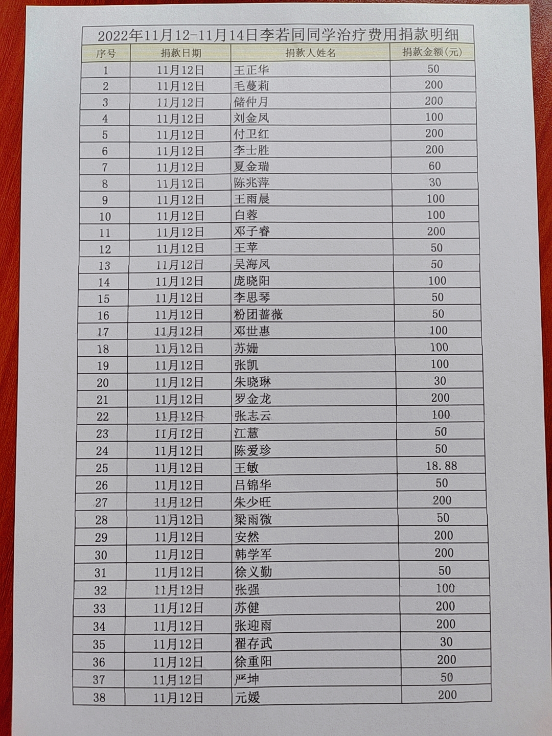 以上为“为李若同同学爱心捐款”的明细,如捐款人姓名和金额统计有误的,请与大手牵小手分会工作人员联系,我们将及时处理,联系电话:18120152778